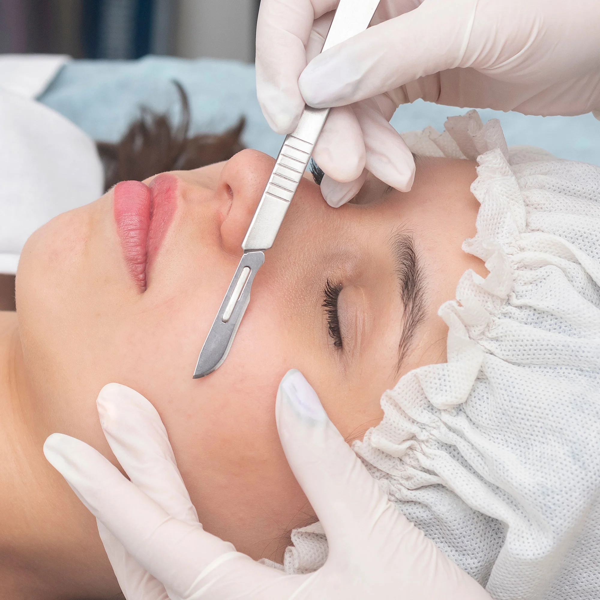 Using a sterile, medical-grade blade, your provider expertly glides the tool across your skin at a precise angle. This technique gently removes dead skin cells and fine vellus hair, revealing a smoother and brighter complexion. The process is comfortable and non-invasive, making it suitable for most skin types.